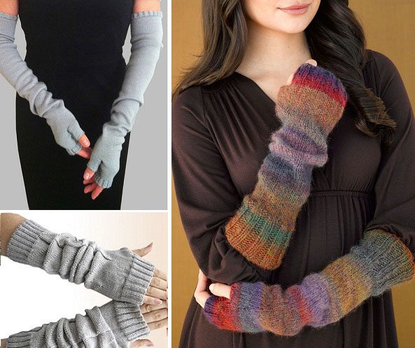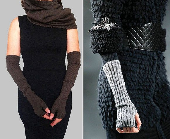 По сути, это длинные вязаные перчатки без пальцев, рассчитанные на прохладную, но не холодную погоду, так как это не варежки. Встречаются они на улицах не так часто, а значит, это простой и удобный способ выделиться из толпы, особенно, если вы правильно впишете их в ансамбль.