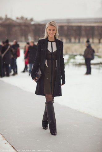 А для поклонниц строгого делового стиля – модное сочетание ботфортов с юбкой-карандашом и платьями-футлярами.