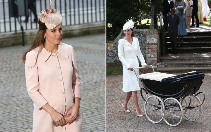 Для прогулки с новорожденной Принцессой Кейт Миддлтон надела белоснежное платье-пальто от известного британского модного дома «Alexander McQueen». Эта вещь прекрасно подчеркнула безупречную фигуру Герцогини Кембриджской, которая стала мамой во второй раз. Кейт Миддлтон часто выбирает наряды от английского дизайнера Александра Маккуина, который четырежды признавался лучшим британским модельером года.