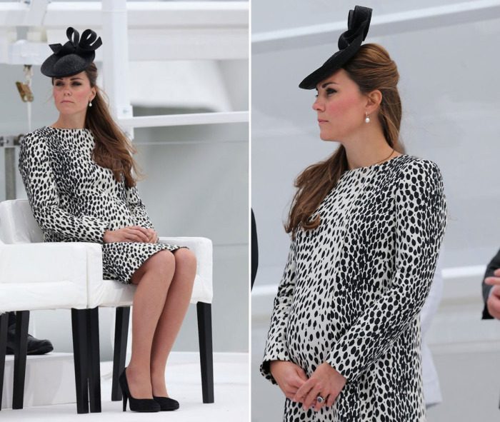 Герцогиня Кембриджская удивила общественность, появившись на официальной церемонии благословения круизного лайнера «Royal Princess» в платье с леопардовым принтом от известного британского бренда «Hobbs».