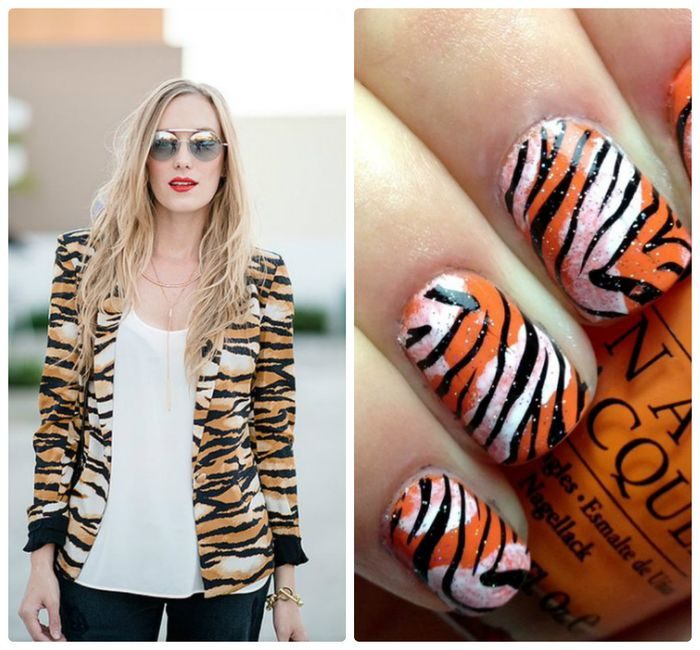 Хищные принты не любят конкурентов, и если носить вместе леопардовый и тигровый рисунок, то они будут конфликтовать между собой. Поэтому модные эксперты советуют останавливаться на одной расцветке. В этом году большой популярностью пользуются имитации кожи тигра, леопарда и змеи. Причём, не обязательно в шубах, на сумочках или в обуви. Актуальны и всевозможные блузы, футболки, платья, шапки, шарфы, даже маникюр и макияж с хищным принтом.