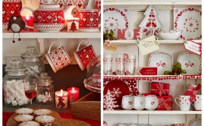 При наведении порядков сразу можно избавиться от старой посуды, которая имеет трещины и соскобы. Красивую и аккуратную посуду не стоит прятать, она вполне пригодится для украшения пространства. Её можно выставить на открытые полки, в буфет или сервант, дополнить её еловыми веточками или ёлочными игрушками. Это позволит создать новогоднее настроение в интерьере. Если же есть возможность, то можно прикупить праздничный сервиз или набор тарелок, которым актуально украсить и новогодний стол.