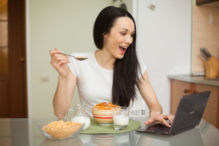 Часто едой мы стараемся скрасить просмотр любимого сериала или работу за компьютером, не контролируя количество пищи. Поэтому рекомендуется есть на кухне, сидя за столом без дополнительной деятельности.