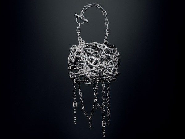 Две культовые модели модного дом Hermes были выпущены под чутким руководствомПьера Гарди специально для ювелирной линии Hermes’ Haute Bijouterie. Они полностью вылиты из розового и белого золота и инкрустированы 2712 бриллиантами. Но самое удивительное то, что размеры этой сумки невероятно малы. В нее даже не поместится твой телефон.