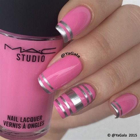 Для любительниц модных экспериментов настало время полной свободы! Весной 2016 особым шиком станет оформление ногтей в стиле нейл-арт. Здесь могут быть использованы лаки и гели насыщенно-ягодных оттенков в сочетании с матовыми, рамки и графика в качестве узора потребуют удлинения ногтевой пластины.Маникюр со скотч-лентой поможет украсить часть ногтя полоской со стильным орнаментом. Розовый с золотом в середине и почти коричневый, чувственный бордо по краям помогут в создании завершенного гармоничного образа.