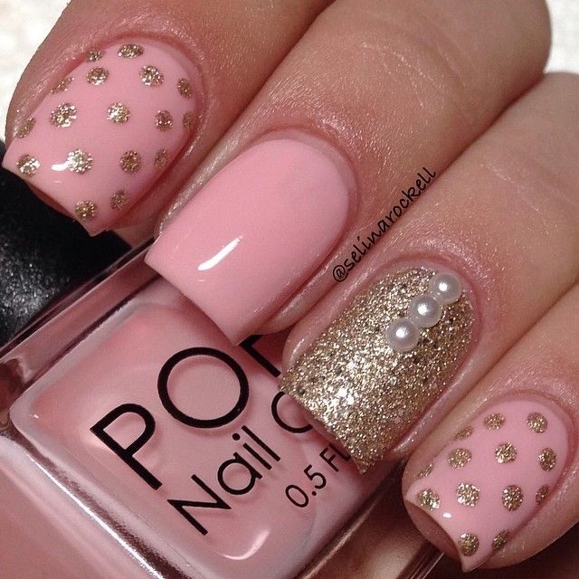 В домашних условиях в сочетании с розовым маникюром можно использовать дизайн фольгой на безымянном пальце, украсить основание ногтя камешками, нарисовать точку и обсыпать ее блестками. Помимо уже названных оттенков розового стильно смотрятся пудровый и розовый с тонами морковного. Помните, что в топе маникюр как способ самовыражения!