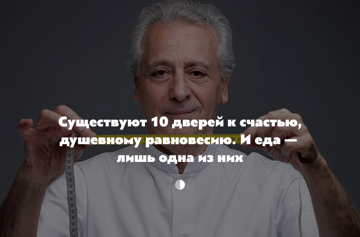 «Я много лет вел врачебную практику — и чем больше общался с пациентами, тем глубже понимал, что корень проблем многих из них вовсе не лишний вес. Я пришел к выводу, что существуют десять дверей к счастью, душевному равновесию. И еда — лишь одна из них. Если большинство из них закрыты, мы утешаемся едой. Задача в том, чтобы проанализировать, какие двери у вас закрыты и постараться их открыть. Вот эти двери.