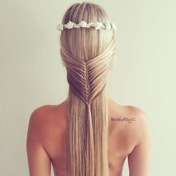 Пряди укладываются не поверх центральной, а пропускаются снизу, коса имеет определенный объем и смотрится эффектно. Если такую косичку плести не по центру, а слева-направо и сверху-вниз, как бы по диагонали, она будет выглядеть как красивый ободок. Можно заплетать от уха до уха, не трогая оставленные свободными волосы сзади, можно плести таким образом по кругу, закрепив конец косы в центре макушки, многократно обвив вокруг голову или в любом месте, где она закончилась, если волосы не столь длинны. Из французской косы можно сделать венец вокруг головы и украсить его вставленными цветами.