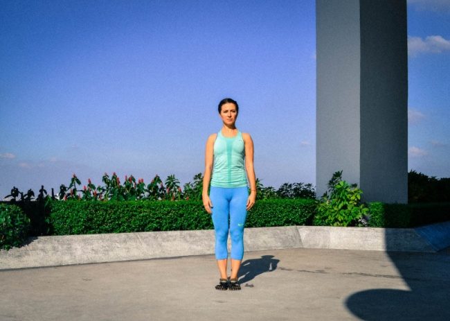 Исходное положение: встать прямо, ноги вместе, руки вдоль тела, спина прямая.
