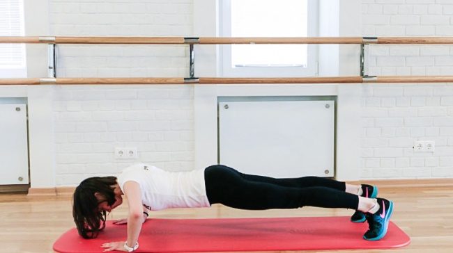 Исходное положение: поза планки с опорой на предплечьях. Ноги на полупальцах. Корпус, таз и ноги должны образовывать прямую линию.
