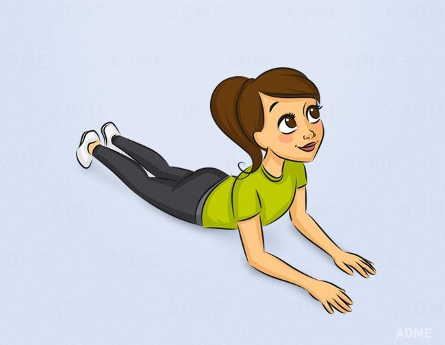 Как выполнять. Ложитесь на живот. Поднимаете верхнюю часть туловища и опираетесь на предплечья. Предплечья параллельно друг другу. Плечи опущены, взгляд вперед, носки вытянуты. Это «Сфинкс». Теперь встаем на руках. Позвоночник еще более выгибается. Смотрим вперед или вверх. Это «Кобра». Затем опять возвращаемся в «Сфинкса».