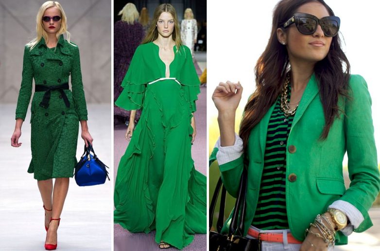 Насыщенный цвет несет энергию жизни и возрождения. Модельеры предлагают сочетать его с оттенками голубого или серого. Неожиданно, но интересно.