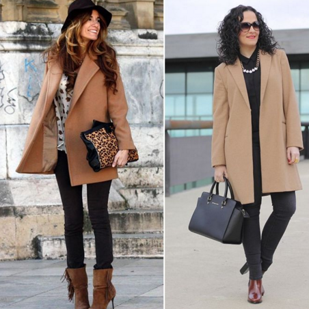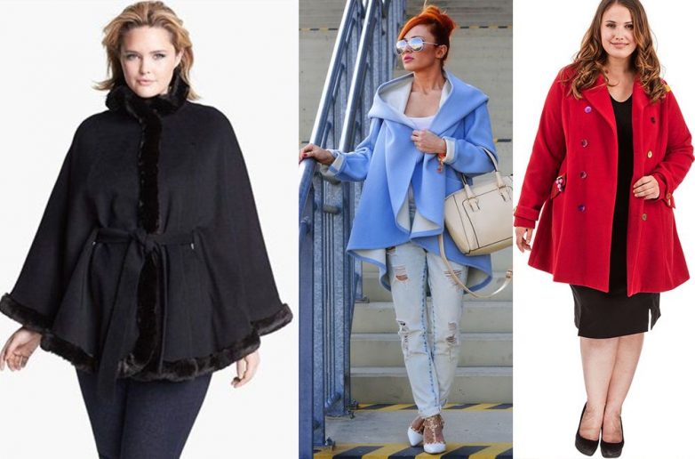 С узкими брюками прекрасно сочетается экстравагантное пальто, расклешенное от груди, образующее складки. Такой фасон хорошо скрывает недостатки фигуры.