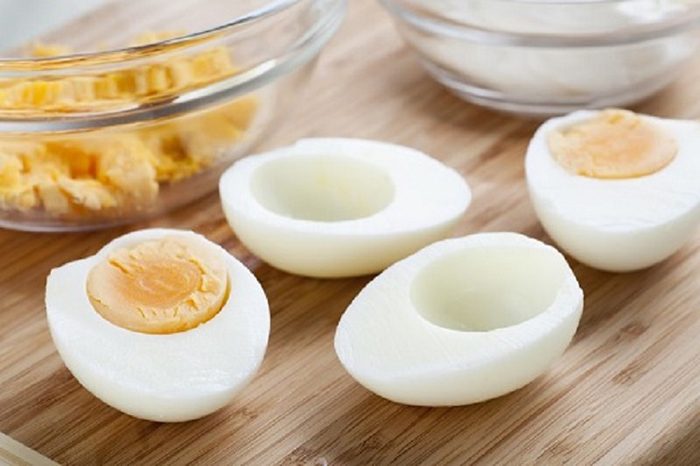 5. 2 белка круто сваренных яиц с 1 средним огурцом (48 ккал)