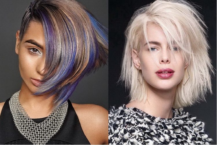 Квадратное лицо можно компенсировать асимметрией: косая челка, пробор на боку, можно поиграть с окрашиванием волос. Если длина волос такова, что можно прикрыть скулы полностью, отлично!