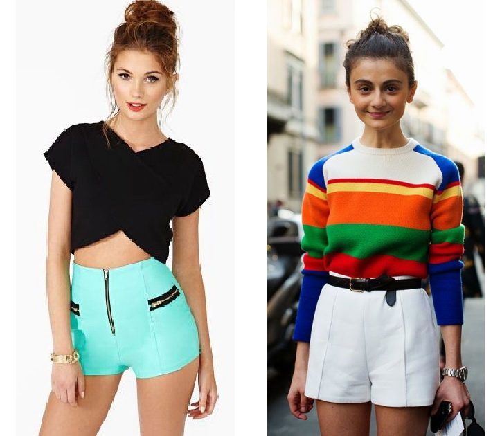 В одежде с завышенной талией есть свой шарм и свои особенности. Например, шорты с завышенной талией прямого кроя идут хрупким девушкам, желающим визуально «удлинить» ноги.