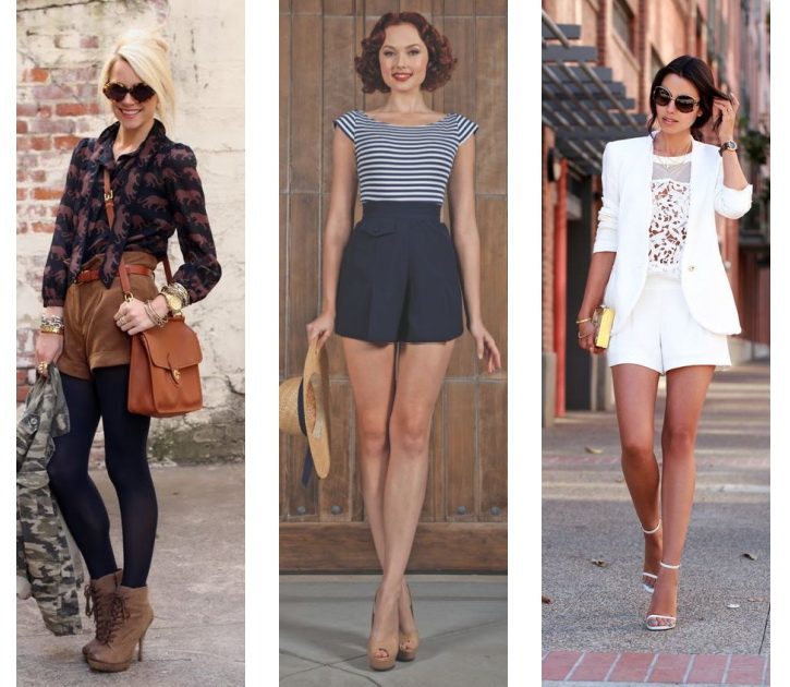 Шорты с завышенной талией одинаково хороши и с обувью на каблуках, с балетками и обувью на танкетке. С утра их можно носить со спортивной обувью или с любой обувью без каблука, а к вечернему наряду – обуть красивые туфли на шпильке. Плотные колготки с шортами будут выглядеть лучше, если максимально подойдут по цвету (в тон или более темные), узкий кожаный ремешок станет функциональным и стильным аксессуаром. Зимние шорты могут быть изготовленными из меха и даже связанными вручную.