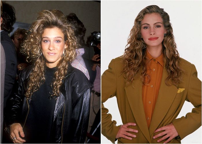 65. 1989 год. Эффект мокрых локонов. Продолжая тему использования новых средств для укладки волос, Джулия Робертс и другие знаменитости отдали предпочтение эффекту мокрых волос.