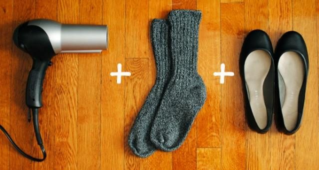 Обувь немного мала? Наденьте толстые носки и обувь, после чего феном подуйте с внешней стороны, чтобы обувь немного растянулась.