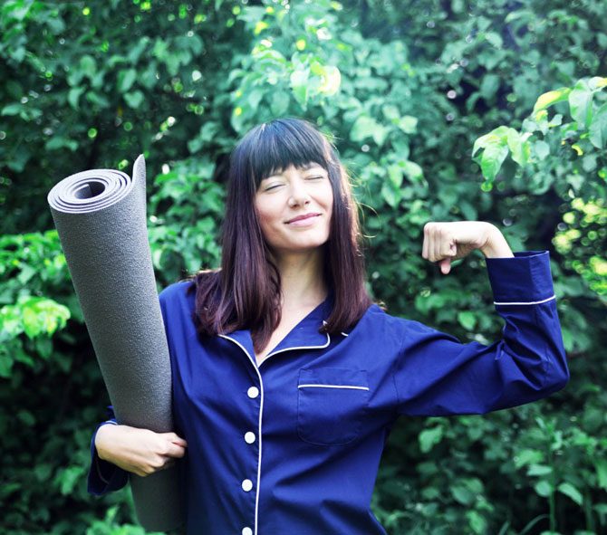 Всего пять упражнений, каждое из которых нужно повторять минимум 5 и максимум 21 раз, отлично прорабатывают все мышцы, пробуждают тело, освежают голову и настраивают на нужную волну. Вместо этого комплекса я иногда делаю комплекс из йоги «Приветствие солнцу» и несколько упражнения на растяжку. Когда у меня есть еще несколько минут утром, прыгаю на минибатуте, что также очень полезно для нашей лимфатической системы и пищеварения. В выходные я с удовольствием делаю еще комплекс упражнений по программе Ballet Beautiful. В конце — хотя бы 60 секунд лежу на полу с закрытыми глазами в Шавасане. Как правило, после зарядки я выпиваю ещё пару стаканов воды и отправляюсь в душ.