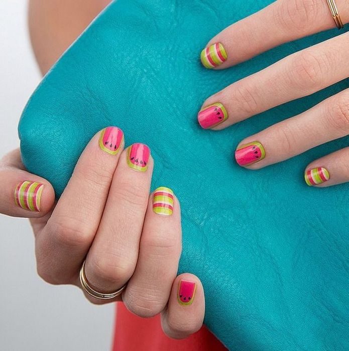 Лето – самая удачная пора для бьюти-экспериментов! Можно смело использовать яркие цвета в одежде, выбирать сумочки необычных форм и рисовать на ногтях арбузные дольки.