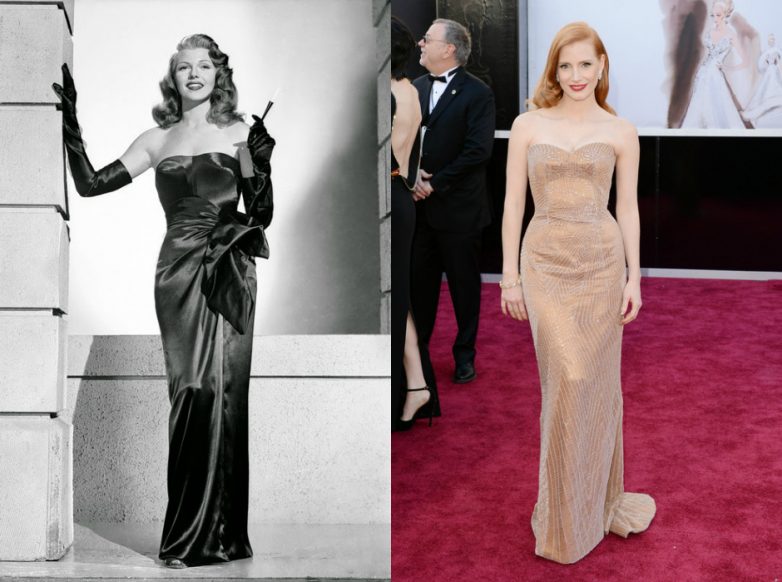 Во всех словарях рядом со словом «дива» в качестве иллюстрации нужно размещать фото Риты Хейворт и Джессики Честейн: неподражаемые златокудрые красотки — истинное воплощение этого понятия. Именно благодаря Рите Хейворт возник термин «секс-бомба». Главная звезда Голливуда 40-х годов умела одинаково эффектно и одеваться, и раздеваться. Честейн блюдет нравственность и предпочитает воспроизводить образы Хейворт лишь на красных дорожках.