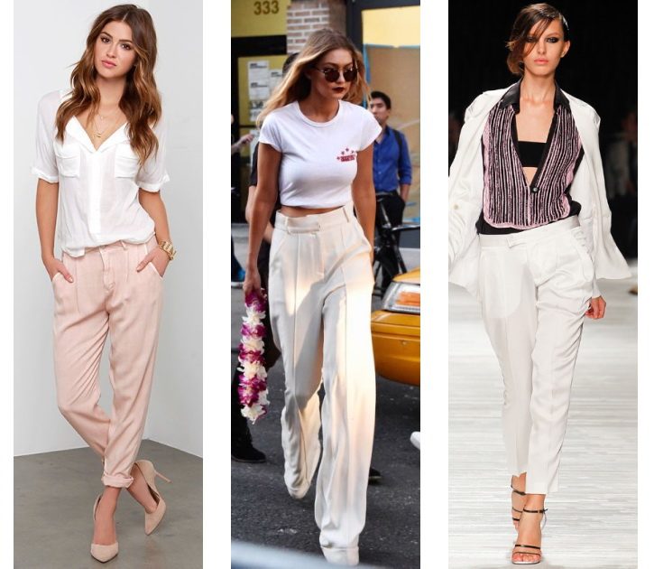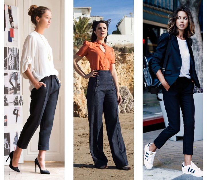 Такие брюки чаще всего носят с обувью на каблуках. Но некоторые модели, например, зауженные, прекрасно смотрятся с балетками и брогами. Хотя все зависит от типа фигуры.