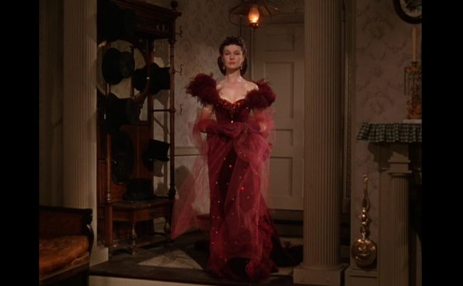 Скарлетт О`Хара была прекрасна не только в зеленом, но и в шикарном пурпурном наряде на вечере у Мелани. Фидл-ди-ди, господа!