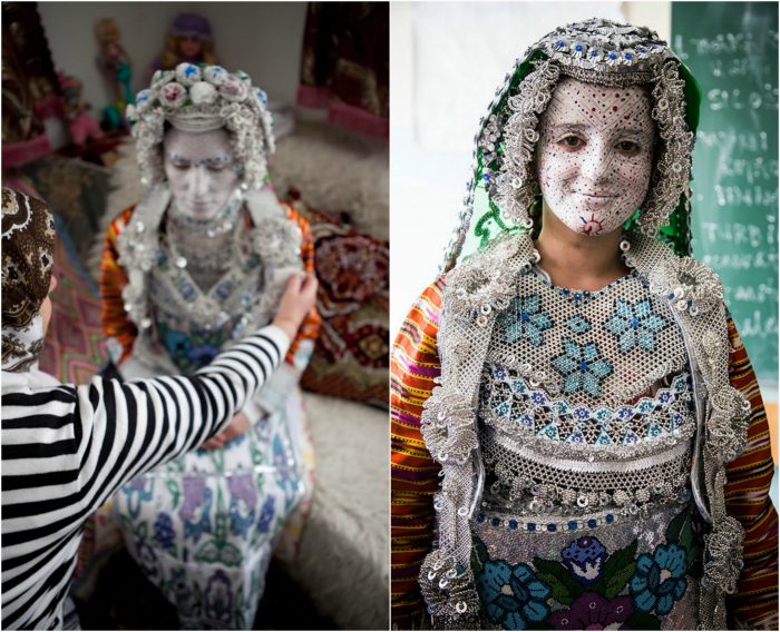 Невесты из Косово похожи на фей и кукол. Такая ассоциация возникает из-за необычного, немного сюрреалистического макияжа, который должен защитить девушку от сглаза и сплетен. Наряд невесты расшит серебром и камнями, также в образе присутствует большое количество различных украшений.