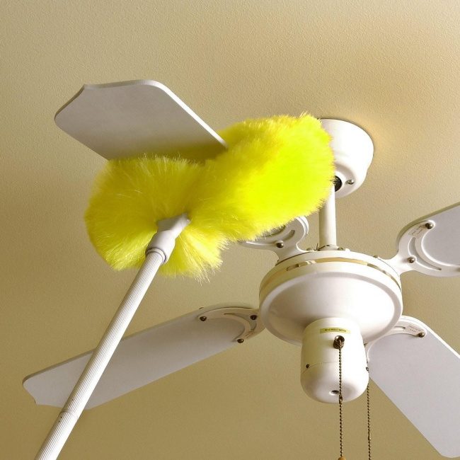 Для того чтобы пыль с одних поверхностей не попадала на другие, протирать ее нужно сверху вниз. В этом случае уборка отнимет меньше времени и сил. Например, вначале протираем потолочный вентилятор, молдинги, верхние части дверного плинтуса, а потом прикроватную тумбочку.
