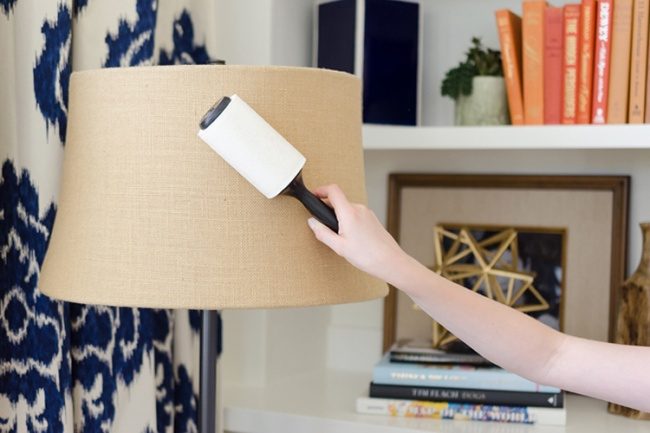 Ролик с липкой поверхностью отлично справляется с чисткой от пыли плафонов, абажуров, декоративных подушек и других тканевых поверхностей.