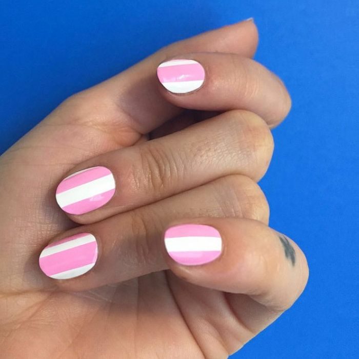 Какая девушка не любит зефир? Некоторых он вдохновляет на создание маникюра! Такие зефирные ноготки сделать не сложно, для этого нужны лишь лаки белого и розового оттенков с плотным покрытием.