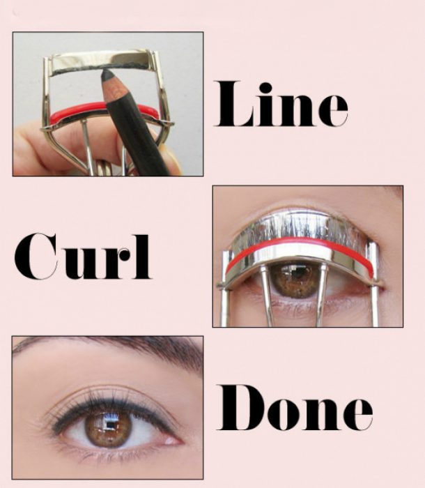 Проведите аккуратную линию желаемого цвета на щипчиках для завивки ресниц и используйте их как обычно. Такая процедура позволит аккуратно подвести глаза и значительно сократит время утреннего макияжа.