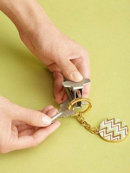 Воспользуйтесь степлером, чтобы надеть ключи на кольцо брелка, не испортив при этом маникюр.