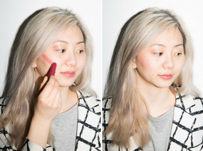 Если нужно быстро сделать макияж, а под рукой нет ничего кроме помады, смело используйте ее в качестве румян и теней. Такие хитрые приемы помогут освежить лицо и сделать взгляд более выразительным. Главное, используйте помаду нейтрального оттенка и тщательно растушевывайте ее на лице.