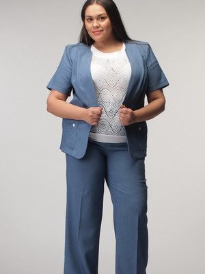 Модные женские брючные летние костюмы в этом году также представлены комплектами с укороченными брюками. Лучше всего с такими брюками сочетается удлиненный пиджак. В целом получается достаточно сдержанный, но современный и стильный наряд.