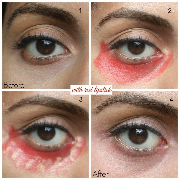 Спите настолько мало, что естественная синева вокруг глаз уже давно заменяет вам тени? Хватит это терпеть! Для эффекта идеальной маскировки смешайте косилер с небольшим количество помады красного или оранжевого оттенка. Экстравагантно, но ведь работает! Никакой магии, простая колористка.