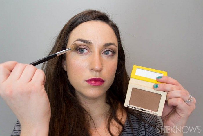 Нет времени утром на полноценный макияж глаз, зато всегда найдётся минутка для прорисовки несуществующих скул? Совместите приятное с полезным: нанесите немного бронзера в качестве теней. Можно даже той же кисточкой. Просто несколько легких взмахов, без растушевки – и этого будет достаточно для повышения градуса тепла во взгляде. А макияж при этом останется максимально незаметным.