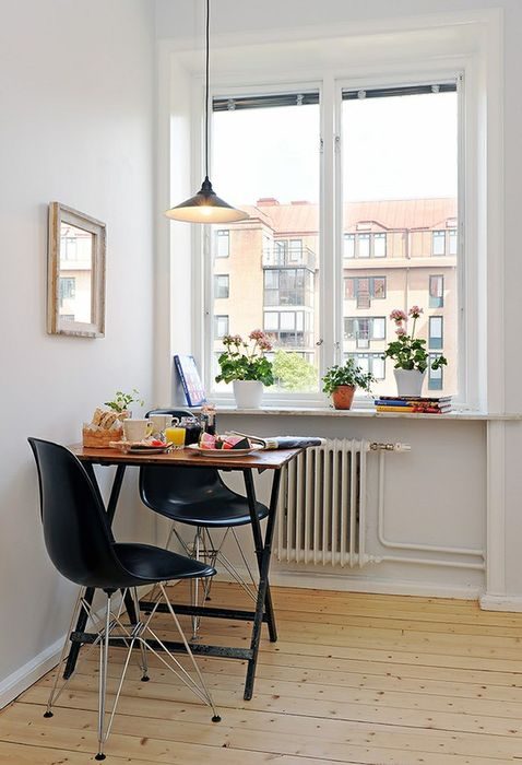 Чем светлее комната, тем она кажется больше и просторнее. По возможности стоит расчистить поверхность подоконника, убрать с него габаритную кухонную утварь. Можно оставить мелкие предметы, которые не будут препятствовать поступлению света в помещение.