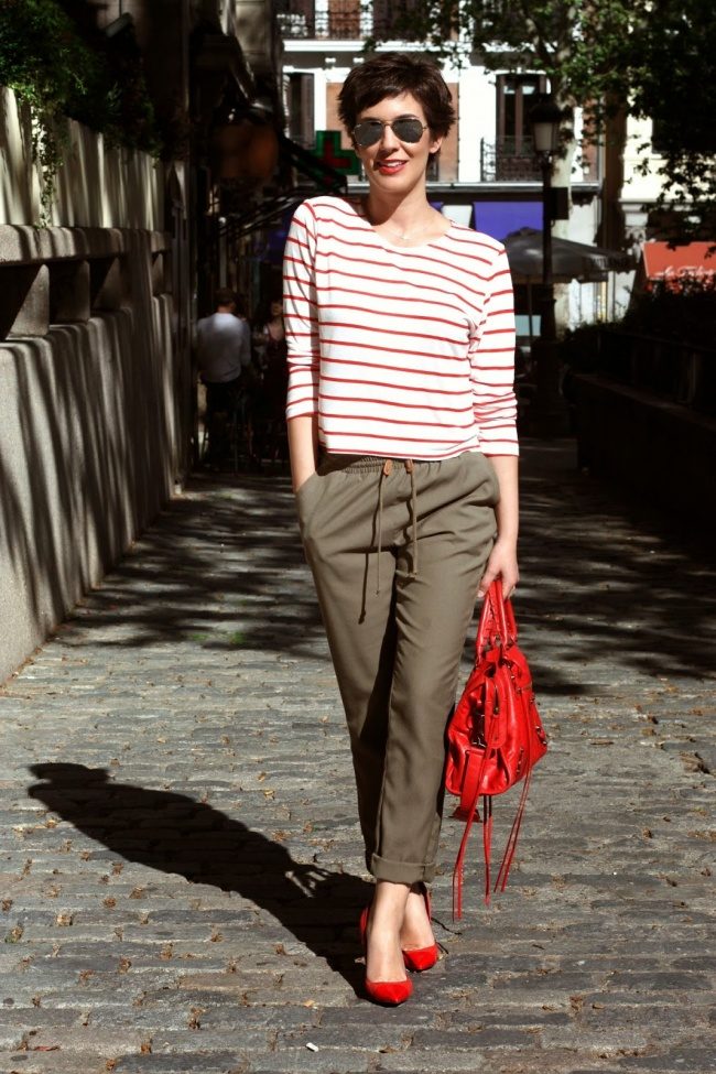 Ярким и подвижным сделает образ тельняшка. Лучше отдавать предпочтение узким полосам, потому что широкие визуально сделают вас шире. Динамичности внешнему виду придает и одежда в горошек.