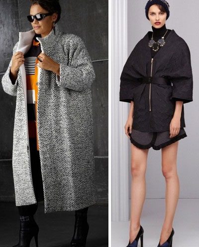Это максимально облегчённые варианты из тонких тканей, часто они не имеют не только рукава, но и встречаются пальто без воротника.