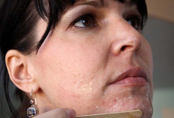 Быстро, пока смесь теплая и жидкая, нанесите её на лицо. Желательно использовать для этой цели деревянную палочку (ели нет специальной, для масок, можно использовать палочку от эскимо). Повторимся: действовать нужно быстро, ведь желатин застывает мгновенно. А нам нужно, чтобы этот процесс произошёл уже на вашей коже.