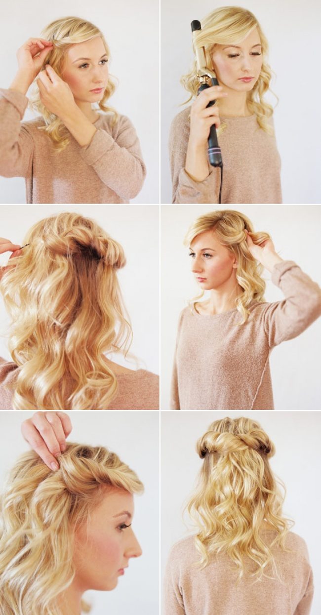 Простая прическа, которая сочетает убранные и распущенные волосы. Более подробно можно узнать здесь.