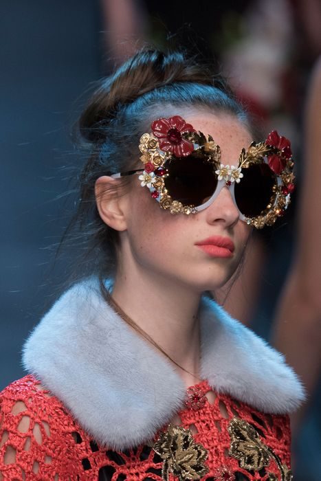 Объёмные цветы, металлические вставки, много страз и стеклянных кристаллов – всё это и многое другое украшает солнцезащитные очки, подготовленные модными домами для осеннего сезона 2016. И чем заметнее декор – тем лучше!