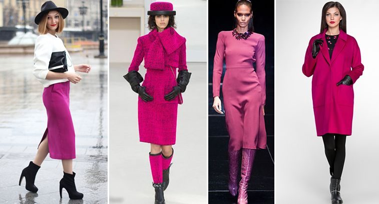 ФуксияОдин из актуальных цветов грядущей осенью. Любительницы яркого гардероба могут смело выбирать одежду этого оттенка. Юбки, пальто, блузки, платья – все это будет уместным и добавит цвета осени.