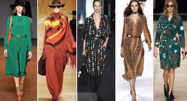 Некоторые детали, актуальные в семидесятых годах прошлого столетия, вновь возвращаются в современную моду: бахрома, крупные изображения, оригинальные ткани. Это обрадует многих зрелых женщин, дав возможность достать из шкафа некоторые забытые вещи или аксессуары.