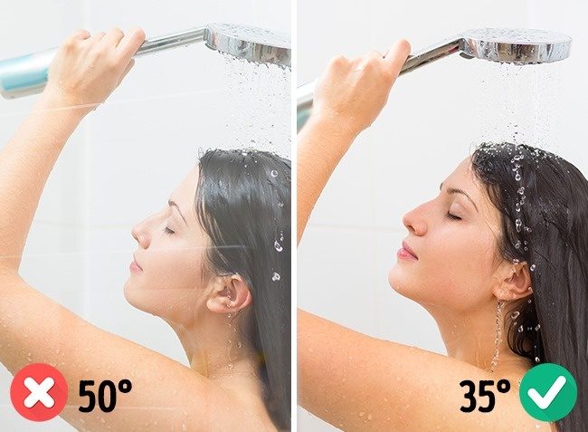 Чересчур горячая вода разрушает тонкий жировой слой, который защищает кожу и удерживает в ней влагу. Привычка мыться кипятком, таким образом, может привести к преждевременным морщинам, сухости и дряблости. Запомните это и откажитесь от горячего душа в пользу воды комнатной температуры.