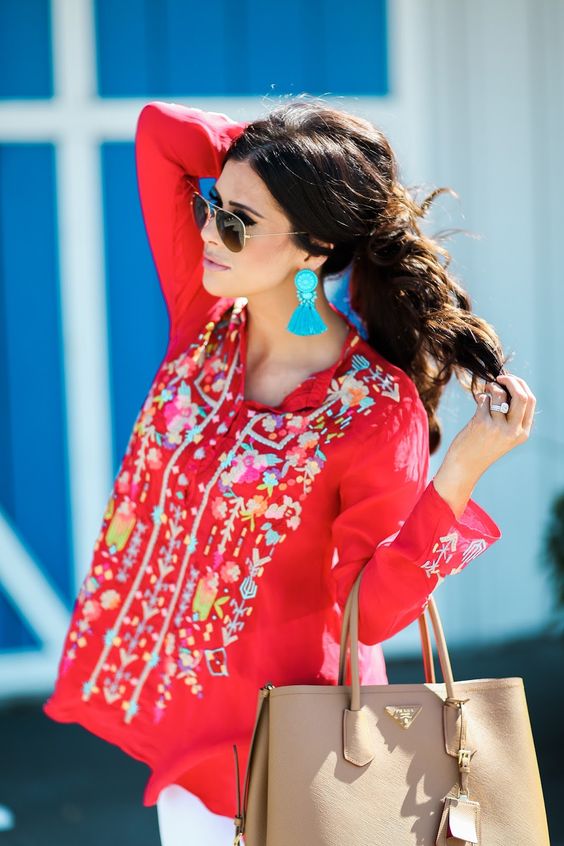 Наряд и серьги могут быть одинаково насыщенными или внимание может быть сфокусировано исключительно на аксессуар. В случае комплементарных цветов – это будет красивый дуэт двух интересных оттенков, которые подчеркнут красоту друг друга. Акцентные серьги станут центром всего образа поэтому лучше сделать ставку на классический или очень необычный цвет.