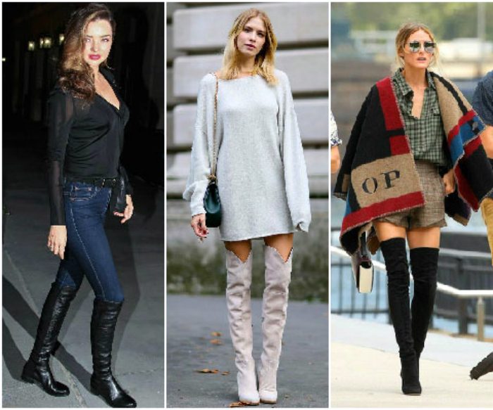 Ботфорты снова в моде. Высокие сапоги прекрасно подчеркивают стройность ног. Самый трендовый ансамбль этой осени — сочетание ботфортов с объемным вязанным платьем.