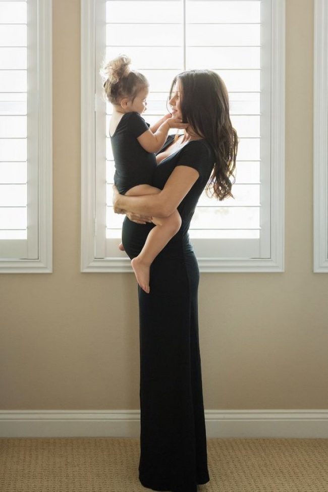 жесть, взрослый ребёнок сидит на беременном животе матери. родила на фотосессии?